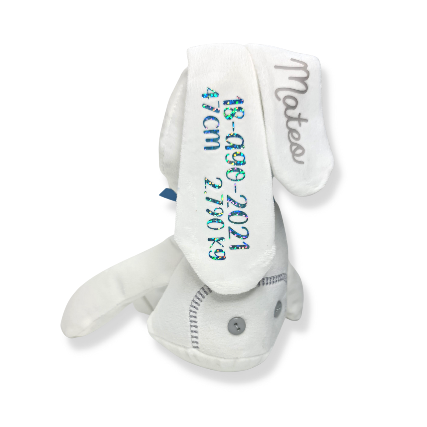 Ahora puedes personalizar cualquiera de nuestros modelos de conejo con los datos de nacimiento de tus pequeños.