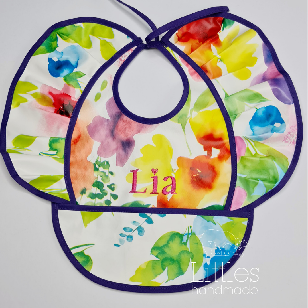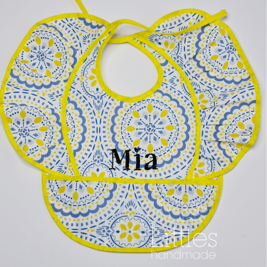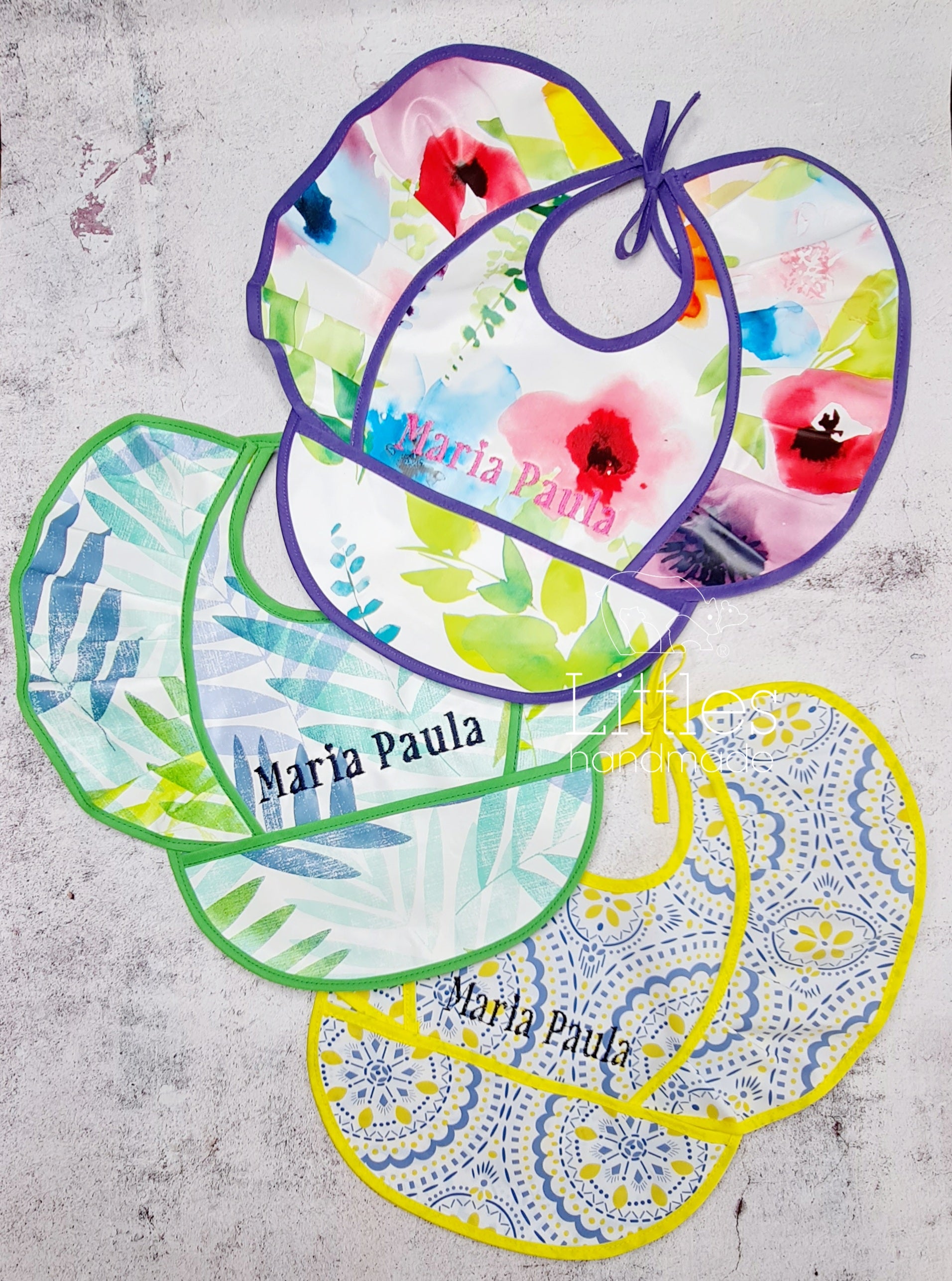 Este diseño de babero es uno de los favoritos y se puede personalizar con el nombre o iniciales de tu bebé.
