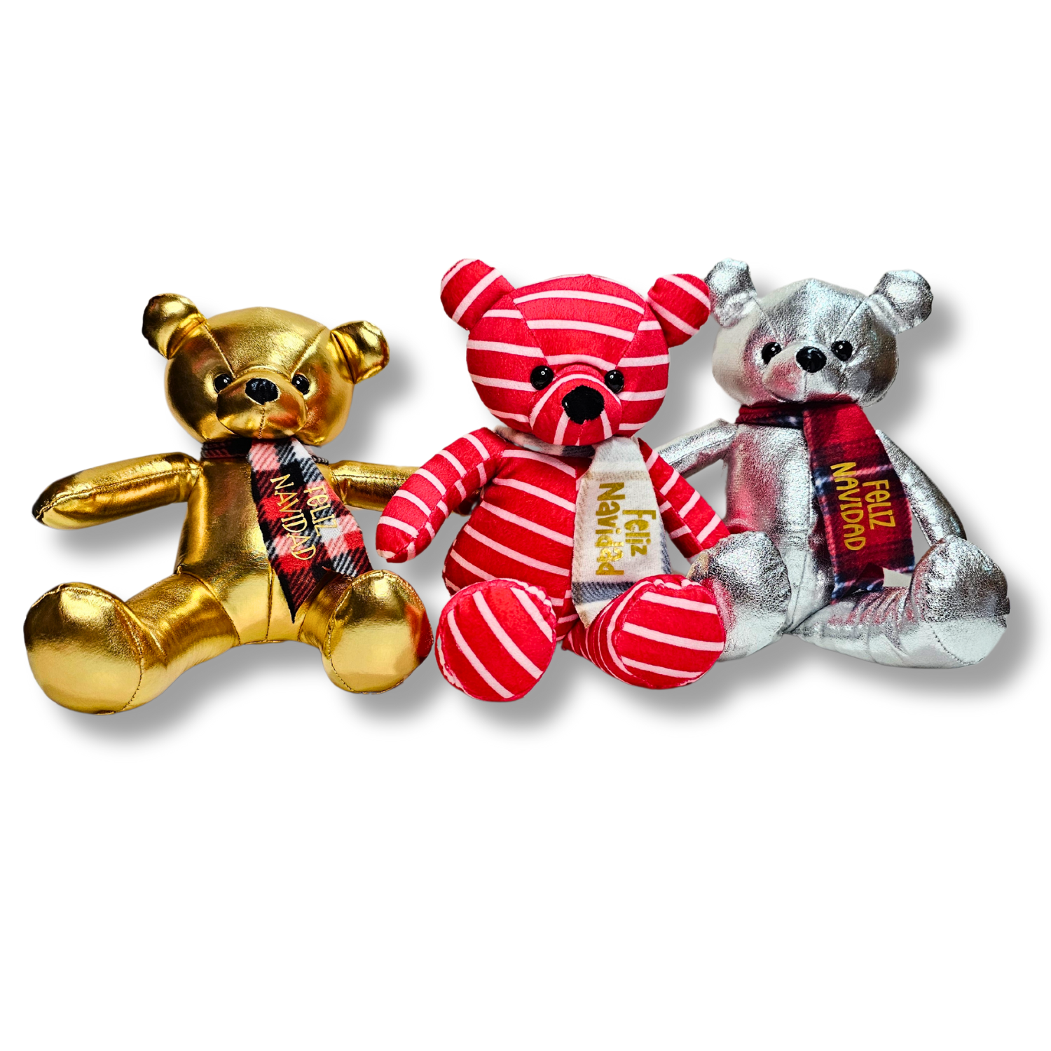 Nuestros ositos están listos para acompañarte y darle un toque muy especial a tu navidad ya sea como parte de la decoración o como un bello regalo.