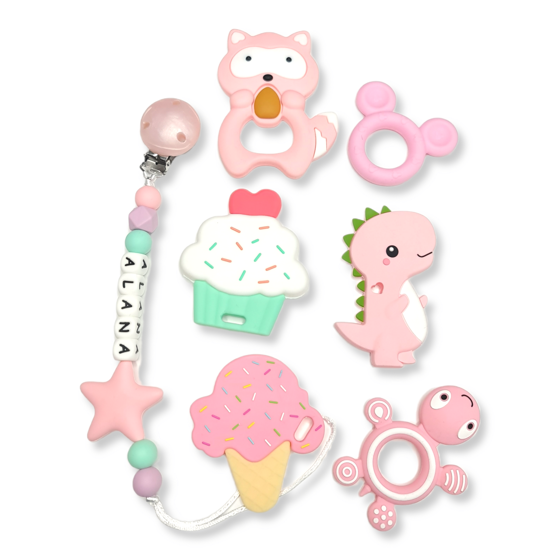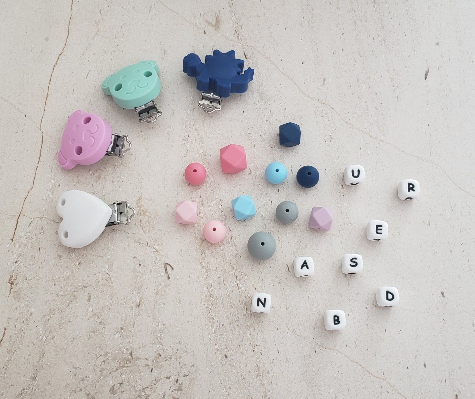Porta chupón elaborado con silicón grado alimenticio libre de BPA, aproximadamente 23 cm de largo