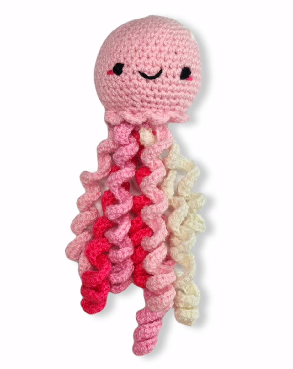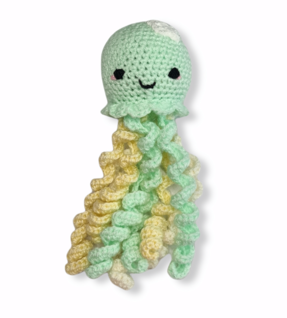Sus tentáculos hacen que los pequeños recuerden el cordón umbilical y les permite relajarse recordando esa etapa. Elaborado en materiales hipoalergénicos