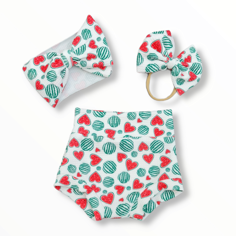 Increíble set de bummies ideales para la temporada de calor, banda y moño.